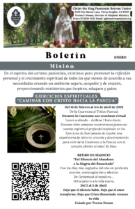 –Tenemos un boletín en Español que se envia por correo electrónico, para anunciarles las diversas oportunidades que estamos ofreciendo. Enviame un email para agregarte a la lista de contactos y no pierdas las diferentes oportunidades a tgdonan@passionist.org