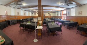 The Quinn RoomThis spacious octagonal room is the largest of our meeting rooms. With windows looking out into the natural setting of nature and the grounds, it provides a relaxed and peaceful atmosphere for prayer, reflection, or group interaction. This room is furnished with up to 110 chairs, and can be set up either theater style or a more formal conference arrangement. And integrated sound system caters to your needs and wireless internet access is also available. Maximum occupancy: 120